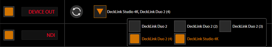 To enable 2nd SDI output, click on the arrow and choose Decklink Duo 2(4) for SDI BOX 4+1 and Deklink Quad 2(8) for SDI BOX 8+1.